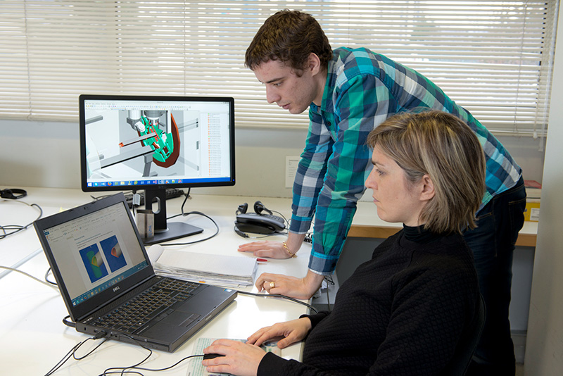 Two almacam's employees working on their nesting software Nest and Cut on the computer