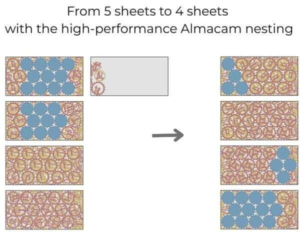 Alma treibt die Grenzen der Teileoptimierung weiter voran. Mit dieser neuen Version wurde die Nesting-Leistung von Almacam deutlich verbessert und liefert im Durchschnitt 0,65 % mehr Materialgewinn im Vergleich zu früheren Versionen.