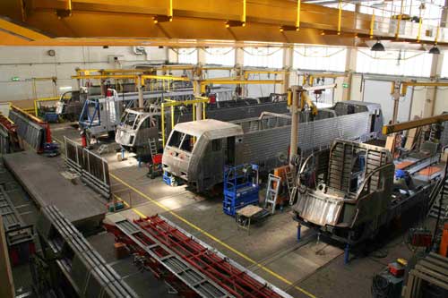 Der Gewichtsanteil der tragenden Blechstruktur ist dabei geringer, als landläufig angenommen. Dr. Kupetz: „Entgegen der gängigen Meinung müssen auch die Lokomotivenbauer sehr auf das Gewicht achten, denn die Achslast darf in Deutschland maximal 22,5 Tonnen betragen, eine vierachsige Lok hat deshalb ein Betriebsgewicht zwischen 86 und 90 Tonnen. Damit eine E-Lok trotz unterschiedlicher Stromnetze länderübergreifend fahren kann, ist aber sehr viel Elektrik und Elektronik nötig. Dadurch kommt so viel Gewicht in die Lokomotive, dass sogar alle nicht tragenden Bauteile wie Dächer oder Türen aus Aluminium hergestellt werden müssen.“ Siemens Transportation Systems verfügt deshalb in München neben der Stahlfertigung auch über eine separate Aluminiumfertigung.