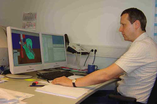 Michael Bauer, der als Betriebsmittelkonstrukteur die Offline-Programmierung betreut: „Mit Teachen hätte wir keine Chance gehabt, die geforderten Termine zu realisieren. Die Termine waren so eng gesteckt, dass wir die Teile für die australische Lokomotive nur über eine Offline-Programmierung auf der Roboteranlage herstellen konnten. Denn der L-Manipulator kann zwar sehr große und bis zu acht Tonnen schwere Teile bewegen, dreht aber sehr langsam. Das Teachen hätte deshalb extrem viel Zeit beansprucht. Die Zelle ist aber sehr ausgelastet, so dass wir sie nicht für Programmierarbeiten blockieren können.“