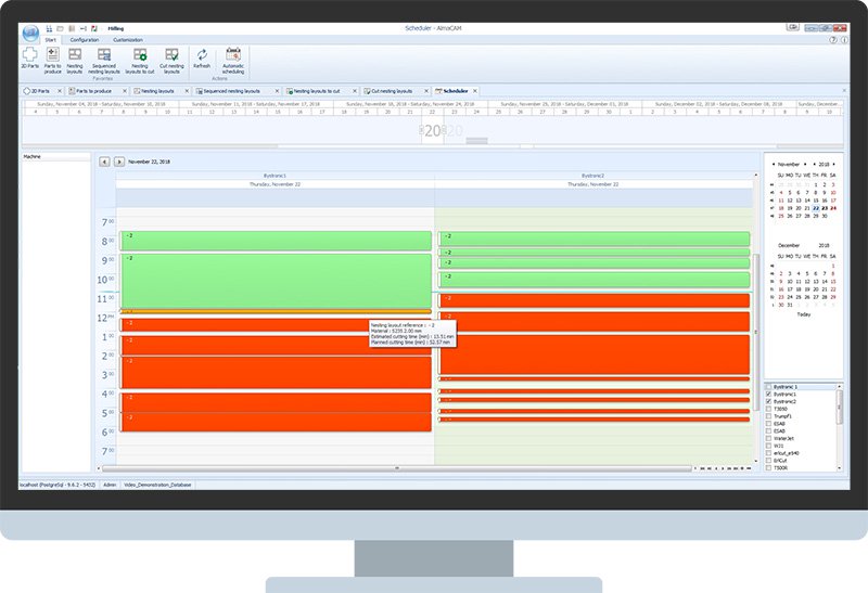 Der Workshop Seat gewährleistet die komplette Rückverfolgbarkeit der hergestellten Teile. Die Auslastung aller Schneidmaschinen eines Produktionsstandorts wird in Kalenderform visualisiert und geplant. Auf diese Weise kann man die Auslastung des Maschinenparks bestmöglich regulieren und die Produktion optimieren.