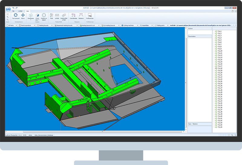 Das Unfold-Modul ermöglicht den Import von CAD-Modellen und die Abwicklung von Blechteilen. Die daraus resultierenden Flächenmodelle werden von Almacam genutzt, um Schneidmaschinen und Stanz-/Nibbelmaschinen (Almacam Cut, Almacam Punch) sowie Abkantpressen (Almacam Bend) zu programmieren.